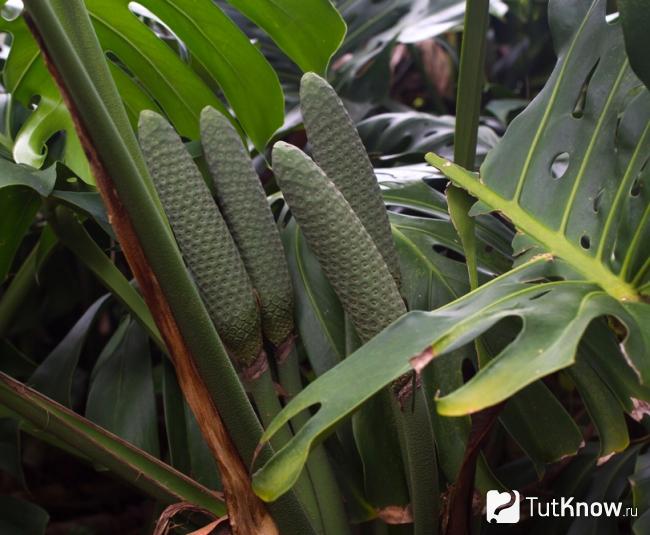 Если монстеру деликатесную выращивают на продажу, то собирают недозревшие ягоды. Тогда после покупки их заворачивают в фольгу и выкладывают на подоконник, под прямые солнечные лучи, чтобы они полностью созрели.